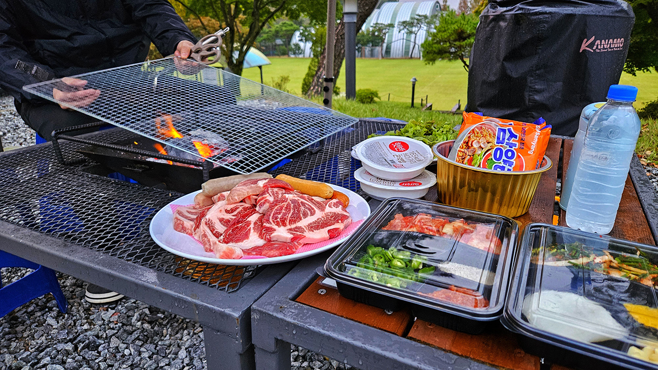 | 3인 BBQ | 한돈목살500g + 프라임소고기250g + 소세지2 + 햇반2 + 라면1 + 밑반찬 + 쌈채소 |