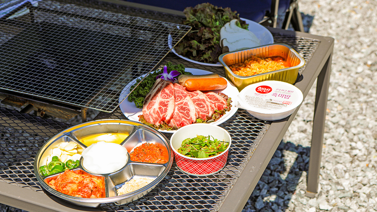 | 4인 BBQ | 한돈목살500g + 프라임소고기500g + 소세지3 + 햇반3 + 라면2 + 밑반찬 + 쌈채소 |