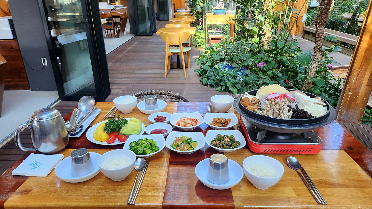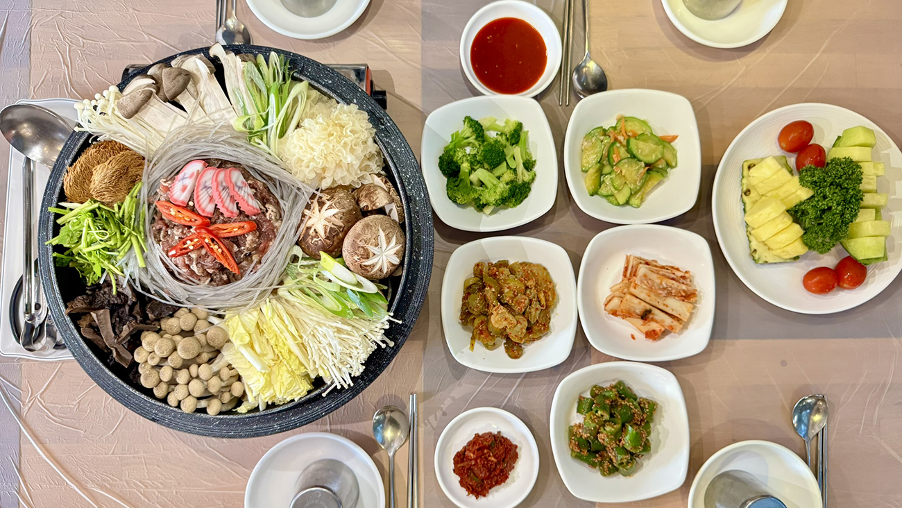 | 한국 | 돈육불고기 , 잡채 | 소고기우거지국 , 콩나물&고사리무침 | 꼬시래기샐러드 , 모듬쌈채소 |