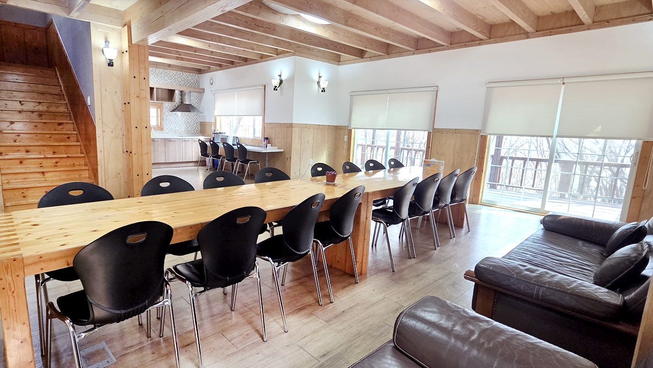 | 롯지하우스 | 3실 | 40평 | 기준15인(최대20인) | 거실1+방4+화장실2 | TV / 에어컨 / 냉장고 / 공기청정기 / 침구류 / 정수기 |