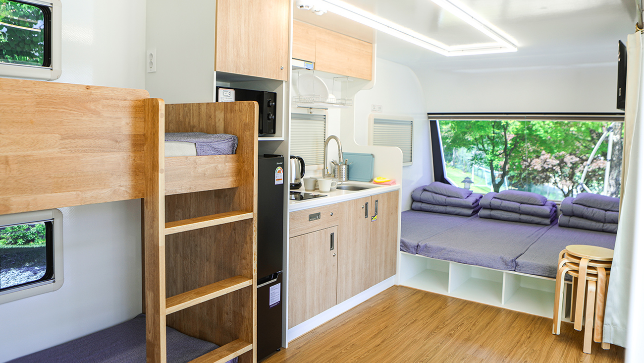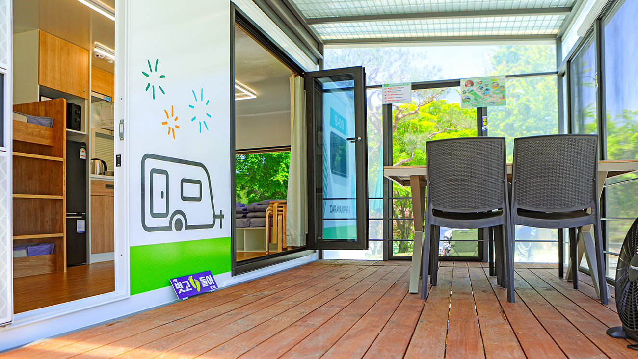 | 카라반(학생용) | 33실 | 기준3인(최대5인) | 3인용침대+2층침대+화장실(온돌난방)- - - - | TV / 에어컨 / 냉장고 / 전자레인지 / 침구류- - - - |
