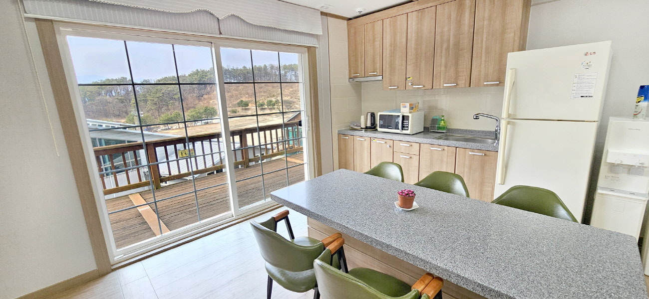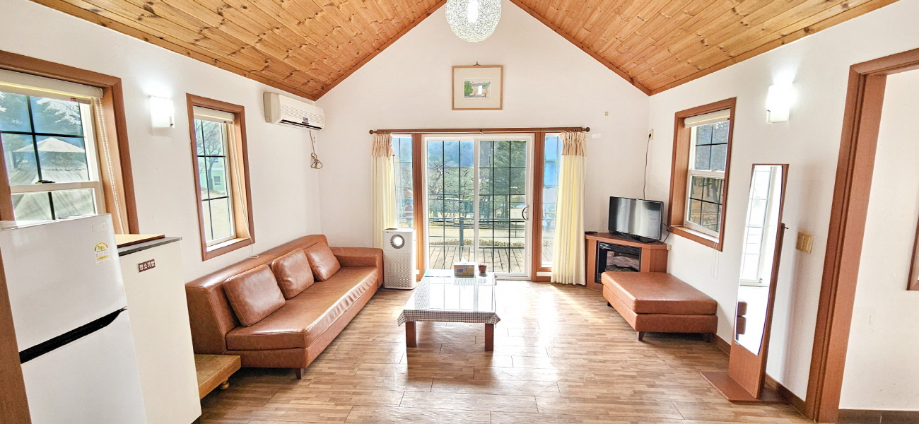 | 캐빈원룸 | 6실 | 12평 | 기준8인(최대10인) | 원룸구조 | TV / 에어컨 / 냉장고 / 공기청정기 / 침구류 |
