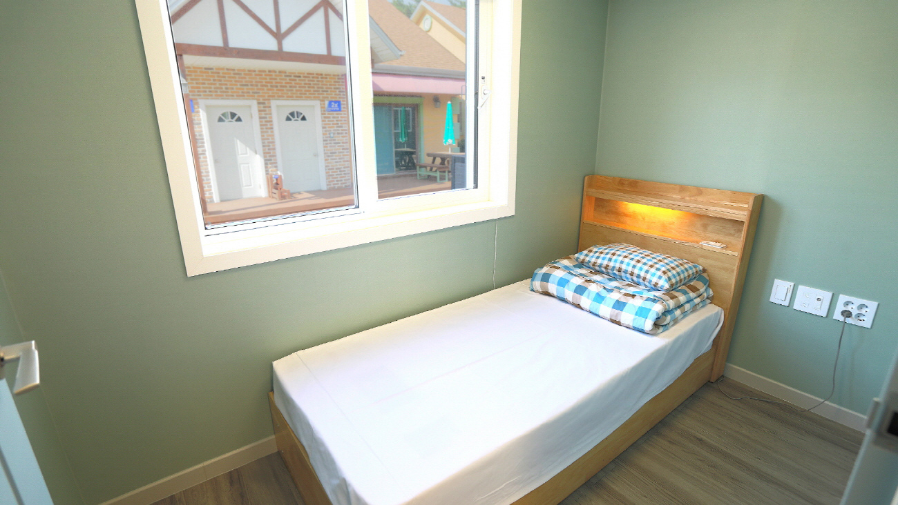 | 힐링스테이 B타입 | 4실 | 8평 | 기준1인(최대2인) | 복층구조 (방3/더블침대+거실1) | TV / 에어컨 / 냉장고 / 공기청정기 / 침구류 |